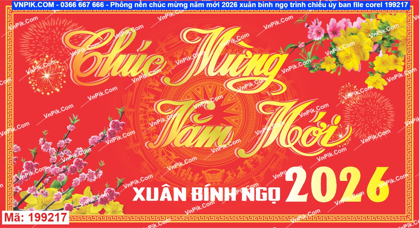Mã 199217 - Phông nền chúc mừng năm mới 2026 xuân bính ngọ trình chiếu ủy ban file corel 199217