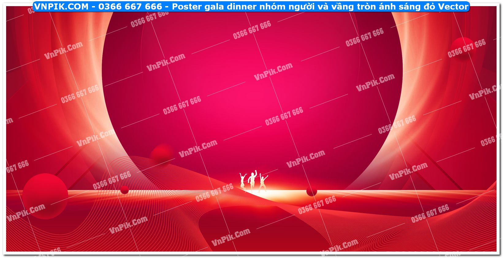 Mã 199388 - Poster gala dinner nhóm người và vầng tròn ánh sáng đỏ Vector