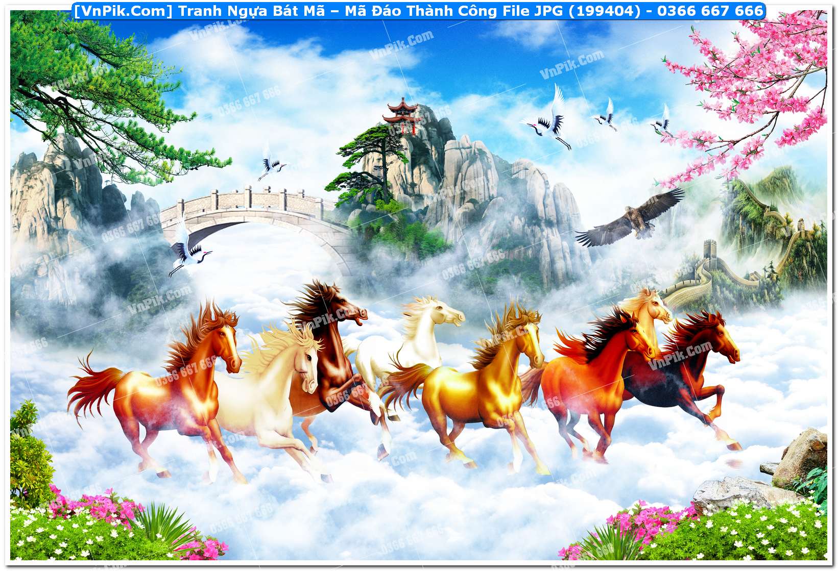 Mã 199404 - Tranh Ngựa Bát Mã – Mã Đáo Thành Công File JPG (199404)