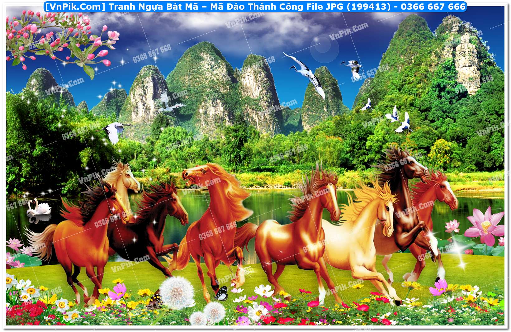 Mã 199413 - Tranh Ngựa Bát Mã – Mã Đáo Thành Công File JPG (199413)