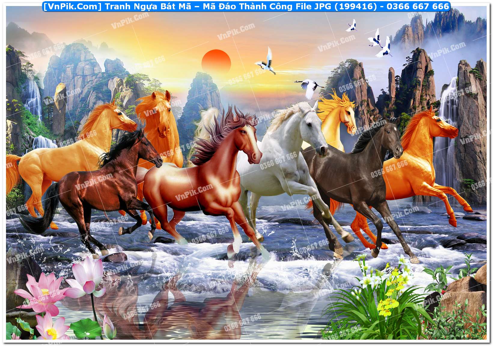 Mã 199416 - Tranh Ngựa Bát Mã – Mã Đáo Thành Công File JPG (199416)